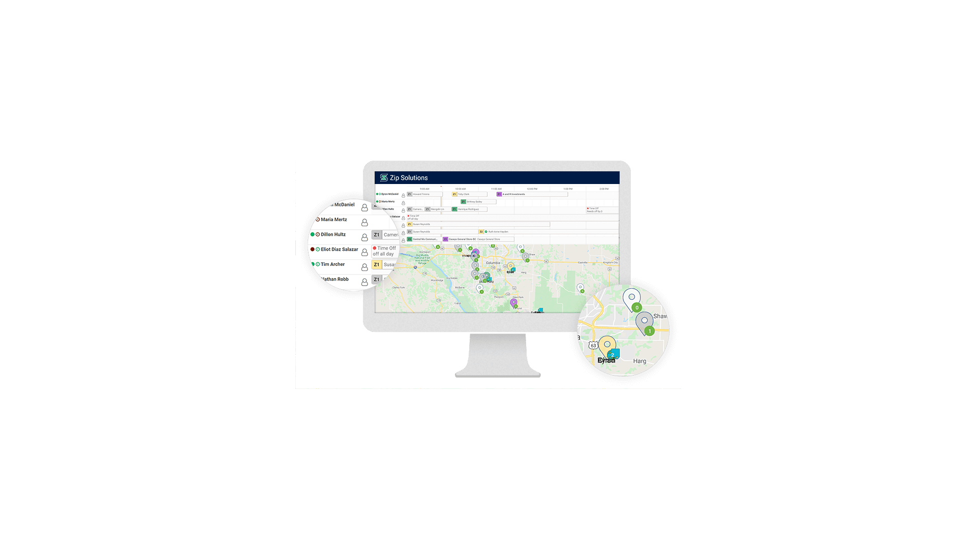 A seamless integration with Webfleet enables Zip Solutions to eliminate data entry for your technicians, decrease drive time, and improve driver behavior.