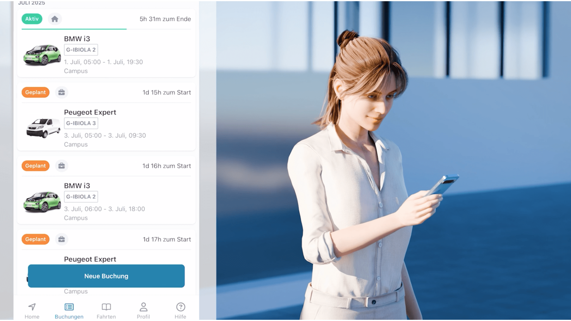 - Digitale Fahrzeug- und Buchungsverwaltung für eine effiziente Organisation von Fahrzeugpools