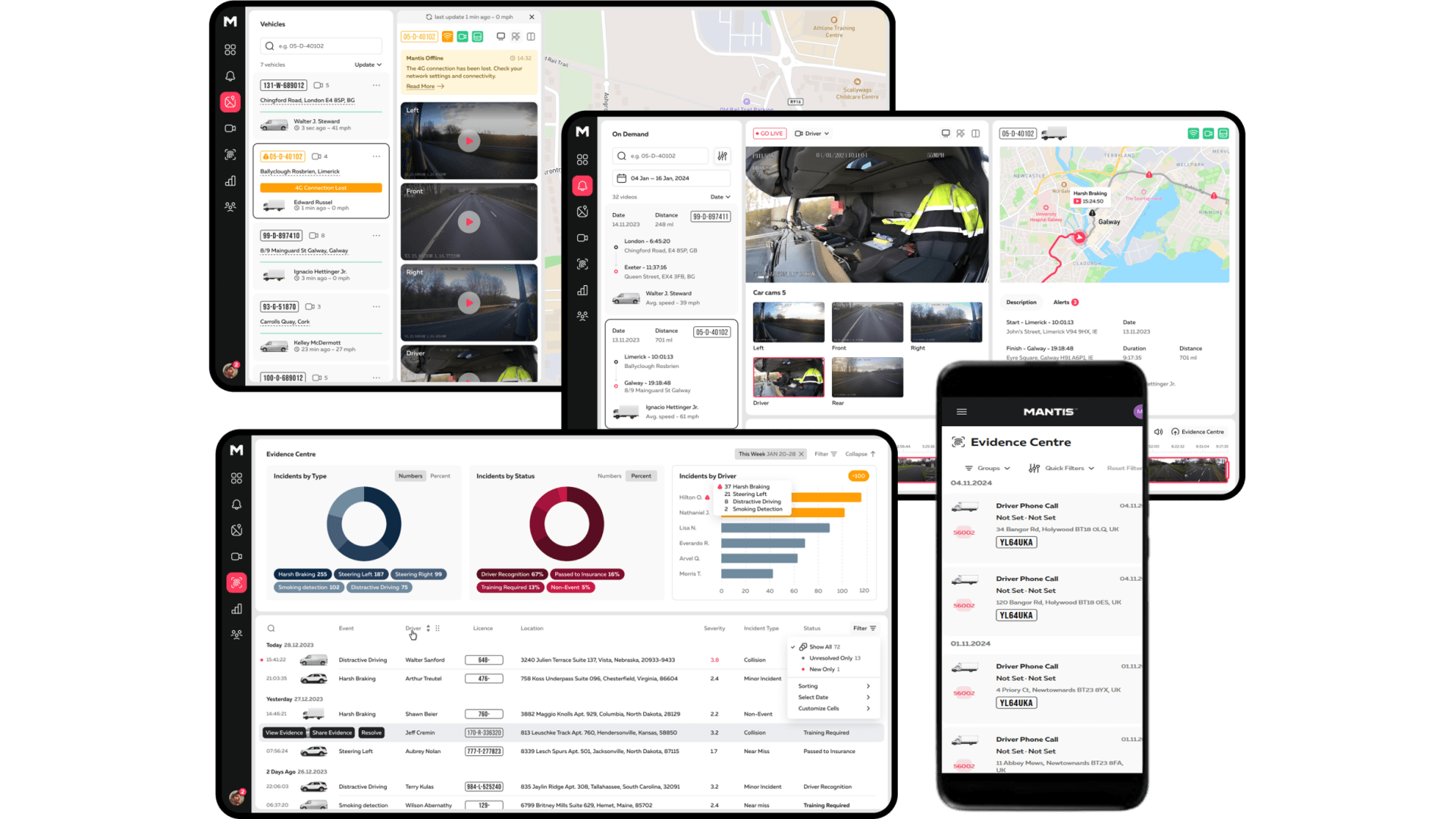 Founded by a team of seasoned telecoms, telematics, and fleet management professionals in Belfast, MANTIS is dedicated to redefining fleet safety and risk management. We provide connected vehicle CCTV solutions for all vehicle types and in any configuration. Our mission is to empower fleet operators with AI-driven solutions that prevent collisions, reduce insurance costs, and safeguard drivers while protecting your brand reputation. We offer a comprehensive range of connected vehicle camera solutions, ensuring the perfect setup for any vehicle type and configuration. By combining world-class fleet data with our advanced camera technology, MANTIS delivers unparalleled insights and complete fleet visibility—putting the power of smarter, safer operations right at your fingertips.