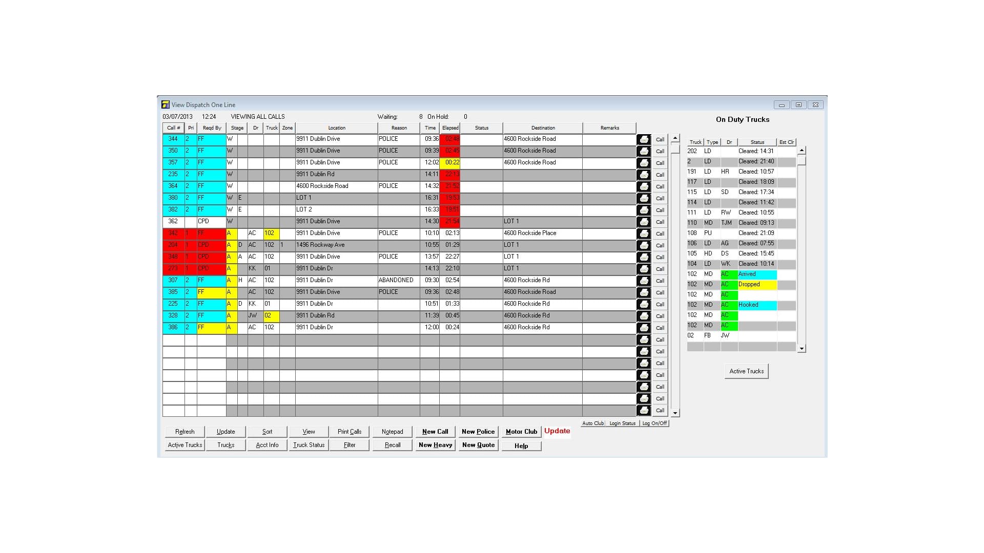 - Track statuses including enroute, arrived, hooked, dropped, cleared and ticket numbers