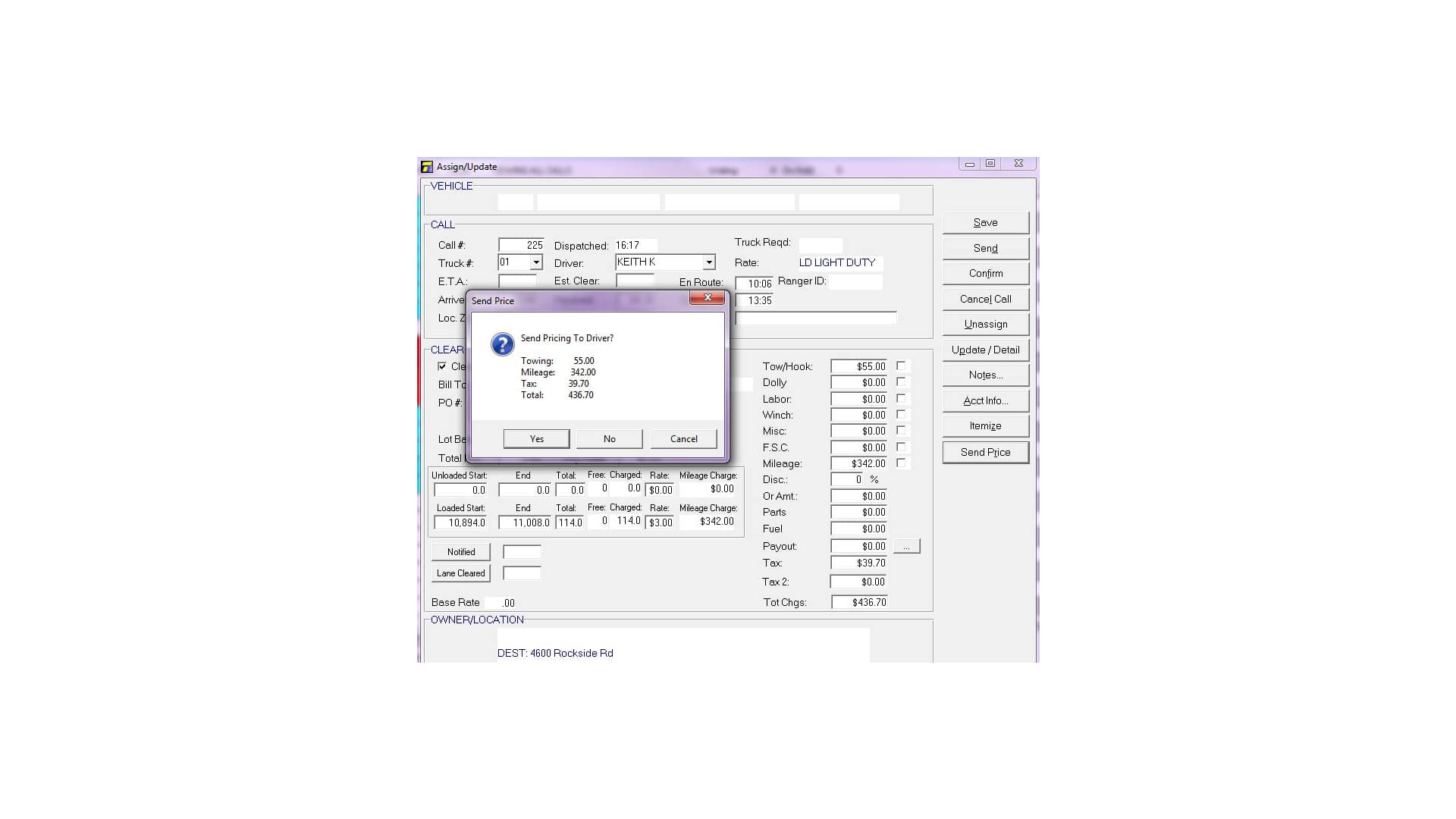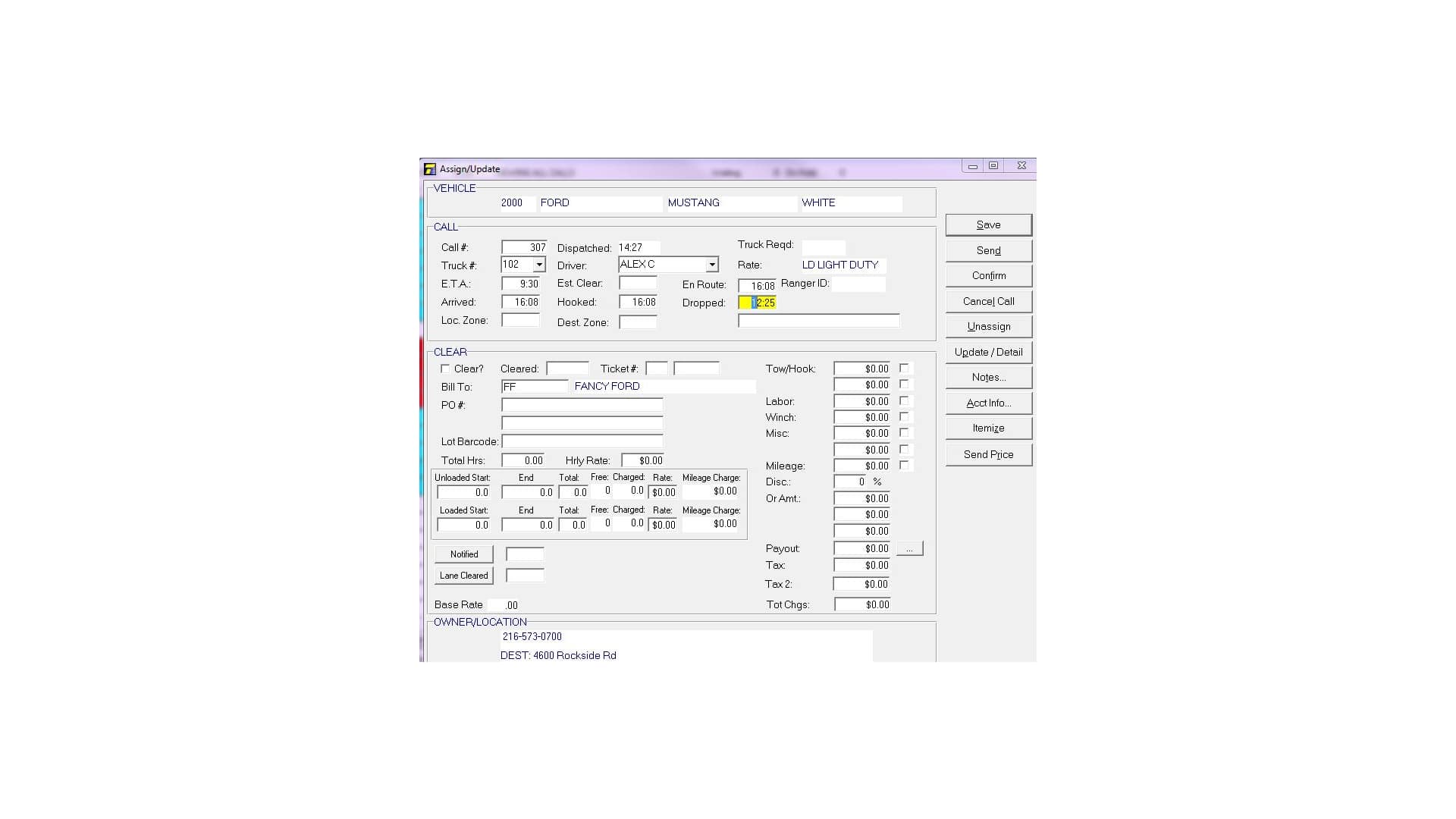 Drivers can record status information such as En-route, Arrived, Hooked, Dropped and Clear back into Tracker Dispatch without speaking to the dispatcher