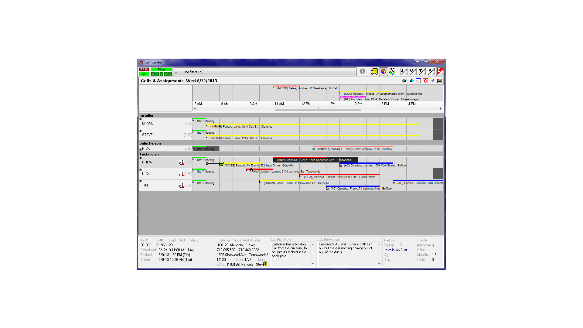 - The tech receives the customer's name and address, job instructions and scheduled start time