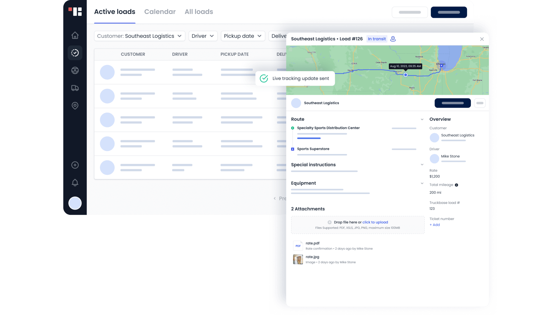 Eliminate data entry with the Truckbase TMS, which is built for growing asset-based carriers. From dispatch to invoicing and settlements, Truckbase simplifies managing your fleet, increases efficiency, and provides peace of mind. The Truckbase + Webfleet integration leverages GPS data to provide relevant information to dispatchers, configurable customer updates, and load tracking via Truckbase's customer portal.