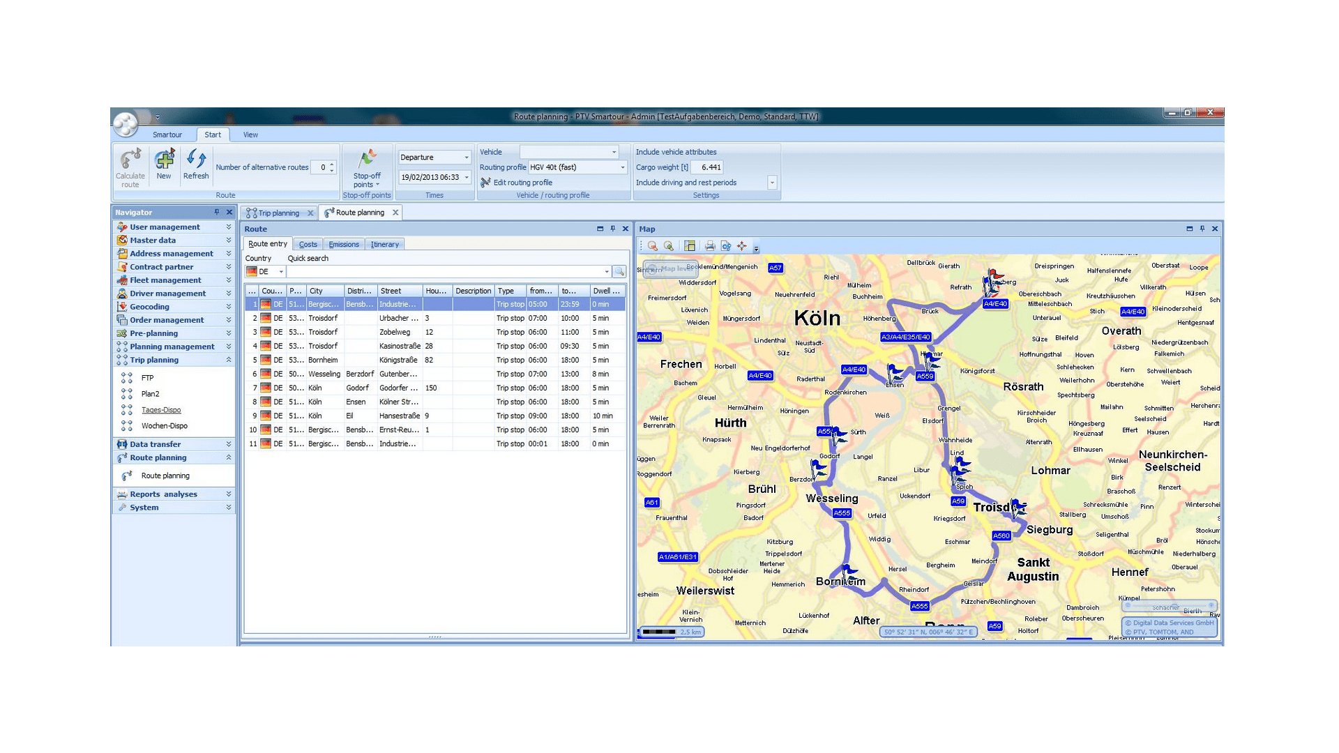 Fornisce software e servizi di consulenza per la logistica dei trasporti e il Geo marketing. Che si tratti di percorsi di trasporto o di strutture di vendita, di trasporti privati o pubblici, noi pianifichiamo e ottimizziamo tutto ciò che muove persone e merci in tutto il mondo. Tutti i nostri software possono essere collegati a Webfleet Driver Terminals.