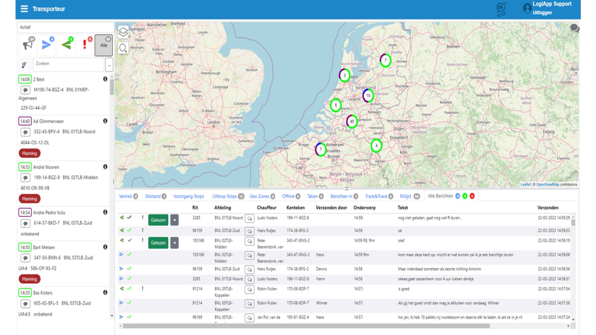 - Logi App is volledig verweven met Webfleet. Het berichtenverkeer, de activiteiteninvoer en ritlijstafhandeling zijn geïntegreerd en bieden de bestuurder optimaal gebruikersgemak.