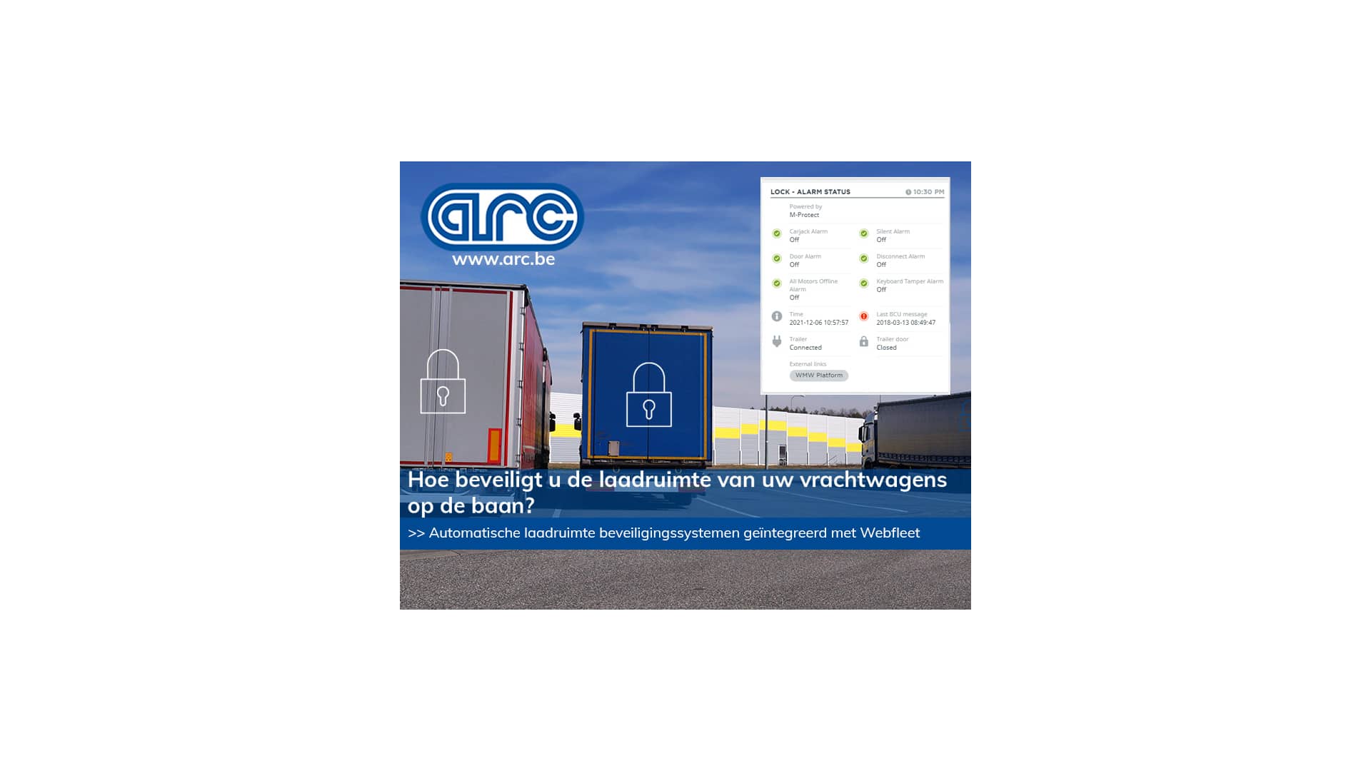 Een voertuig opvolgen, een bestuurder bijstaan in zijn uitdagingen op de baan, een laadruimte beveiligen of machines beheren. ARC helpt u bij uw bedrijfsvoering. Dit doen ze door het slim inzetten van telematica, Internet-of-Things en automotive oplossingen. En door het maken van een koppeling met Webfleet. Ze helpen u bij de keuze van een geschikte oplossing tot de begeleiding bij de ingebruikname en ondersteuning achteraf. Met ARC kiest u voor een betrouwbare ploeg, gepassioneerde mensen die met meer dan 45 jaar ervaring dagelijks voor u en uw team klaar staan.