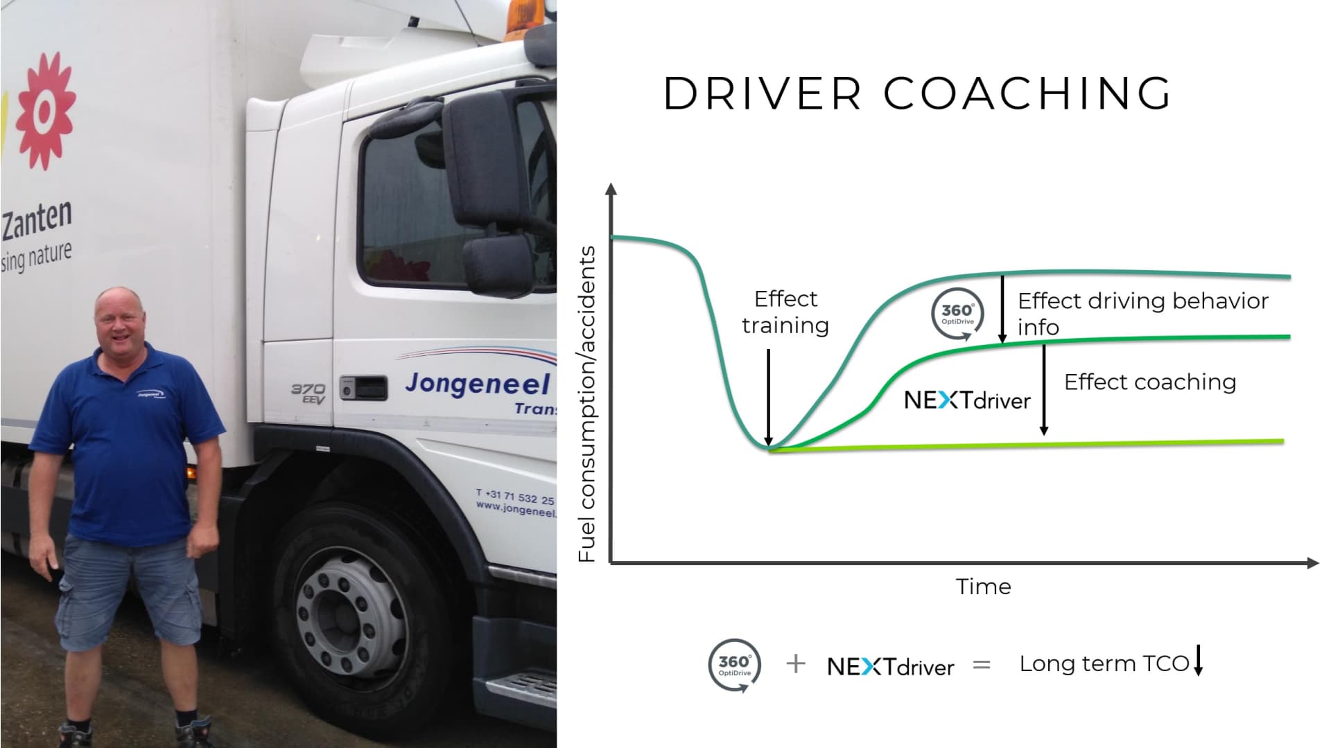 NEXTdriver biedt een alles-in-één oplossing voor chauf­feurs­coa­ching via rijge­dra­ganalyse, competitie en beloningen. Bedrijven werken efficiënter en besparen op brandstof, onderhoud en ongevallen. NEXTdriver breidt Webfleet en OptiDrive uit en versterkt zo de coaching van chauffeurs.