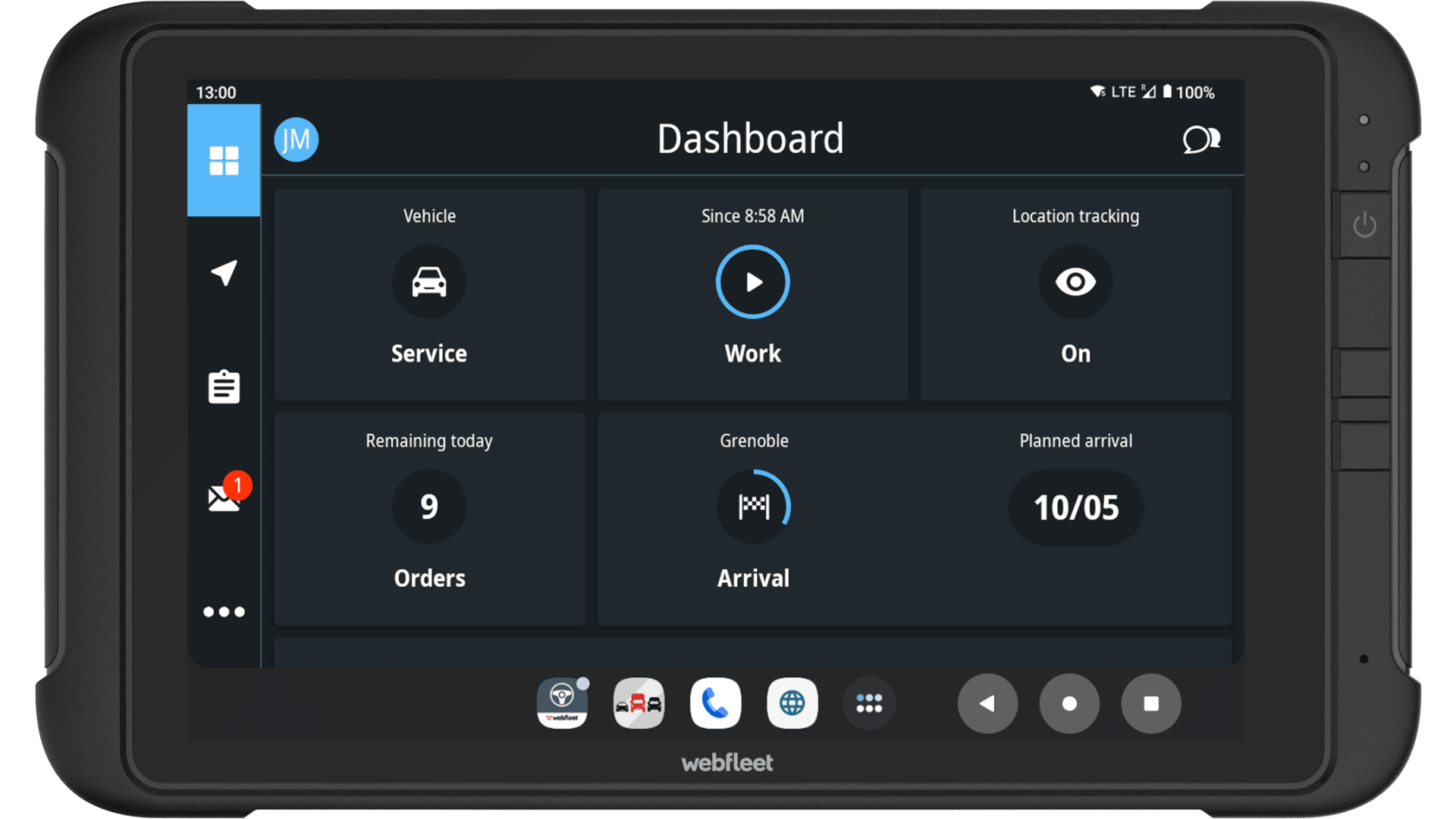 Work App förinstallerad med direktåtkomst till Webfleet-tjänster